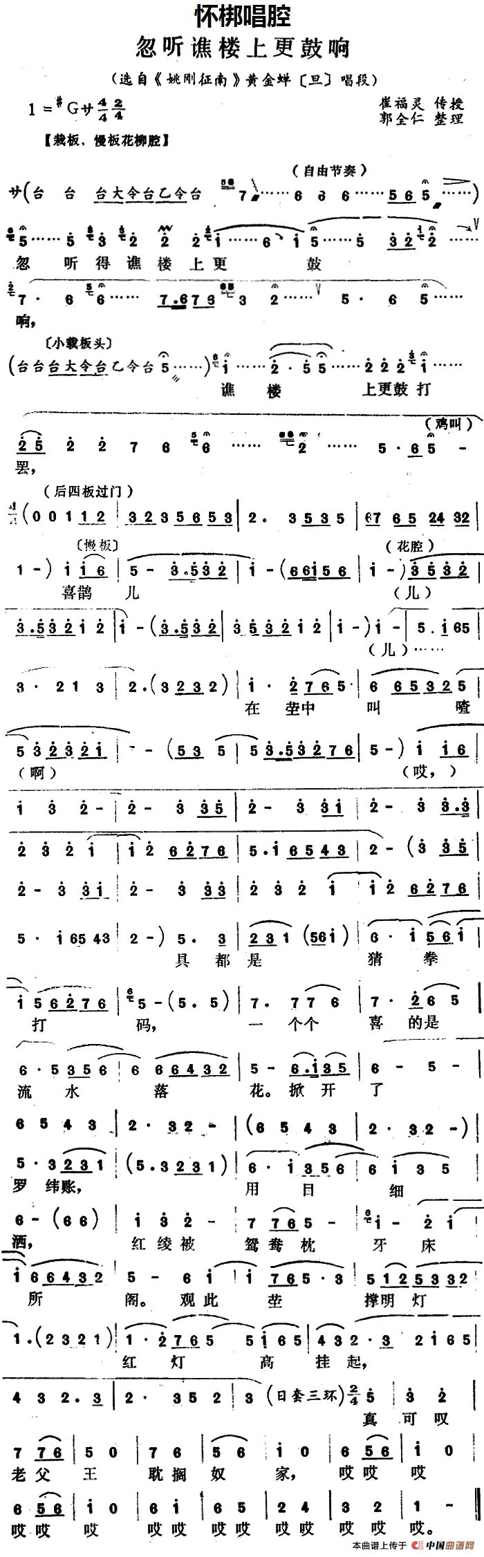 关于《[怀梆]忽听谯楼上更鼓响》曲谱的评论