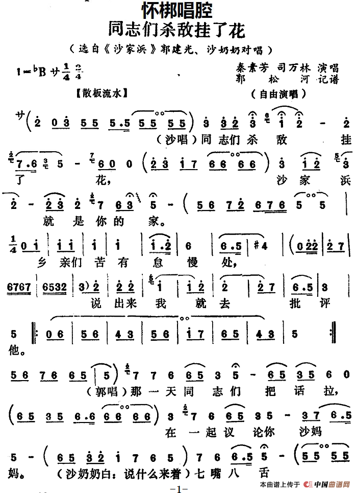 关于《[怀梆]同志们杀敌挂了花》曲谱的评论