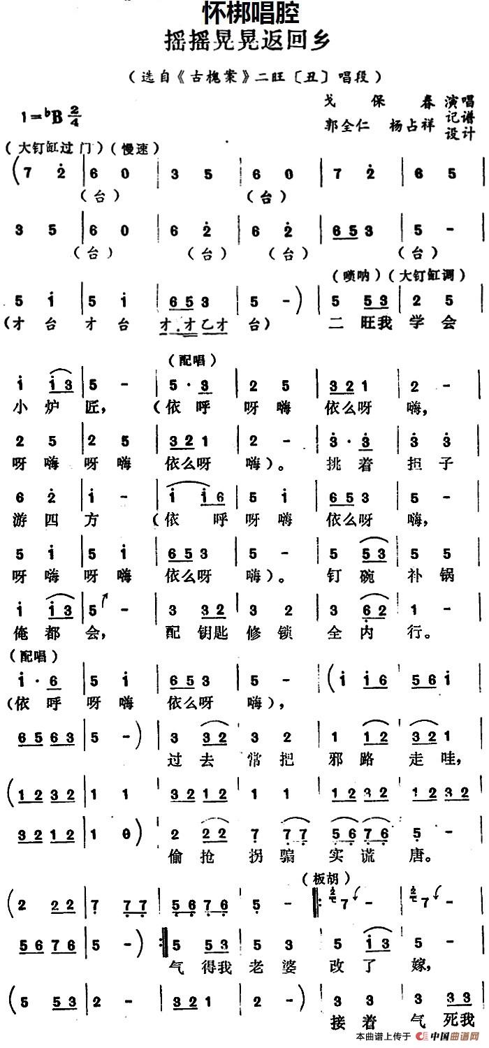 关于《[怀梆]摇摇晃晃返回乡》曲谱的评论
