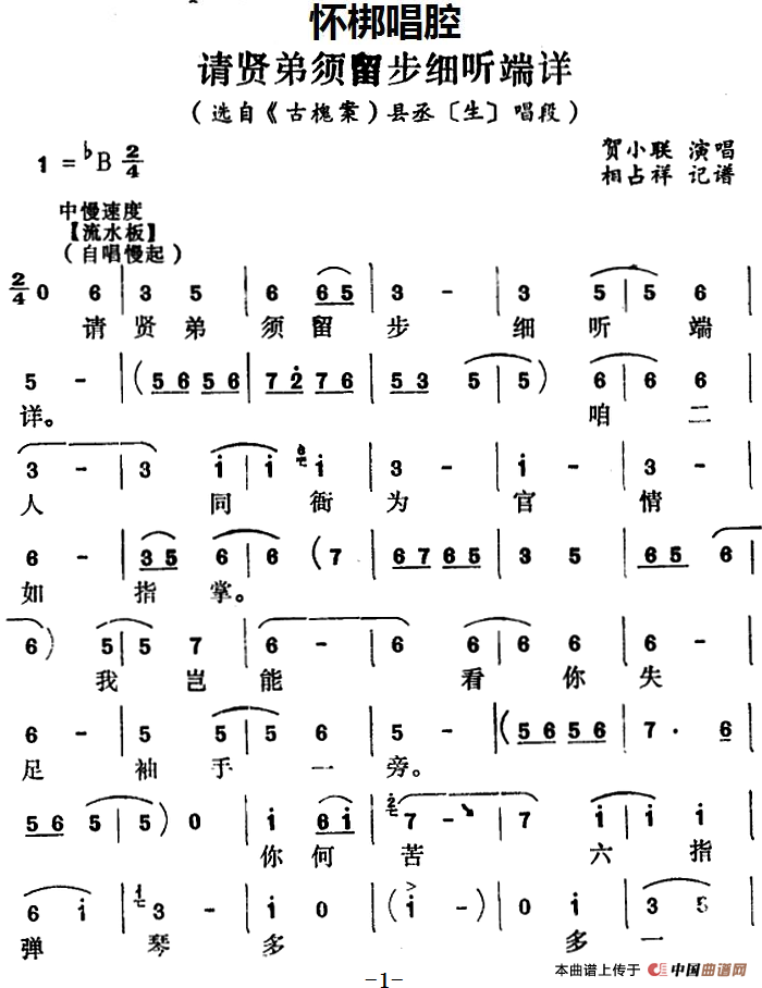 作曲:相占祥记谱 演唱(奏):贺小联 来源:中国曲谱网 上传:热爱音乐88