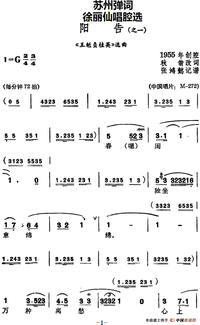 ![[苏州弹词]徐丽仙唱腔选:阳告(《王魁负桂英》选曲之一、之二)(1)_原文件名:[苏州弹词]徐丽仙唱腔选:阳告(《王魁负桂英》选曲之一、之二)秋翁改词 张鸿懿记谱.png](/Public/Uploads/2016/05/24/2379455744525c3e08b.png)
