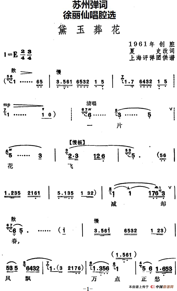 关于《[苏州弹词]徐丽仙唱腔选:黛玉葬花》曲谱的评论