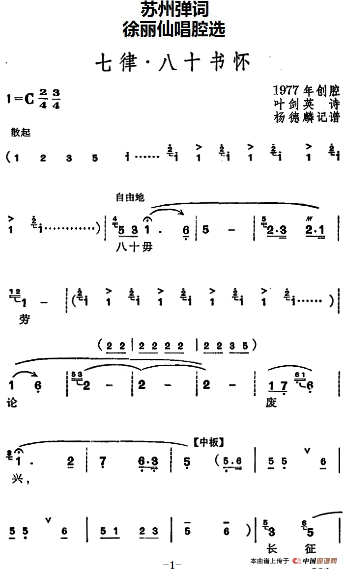 关于《[苏州弹词]徐丽仙唱腔选:七律·八十书怀》曲谱的评论