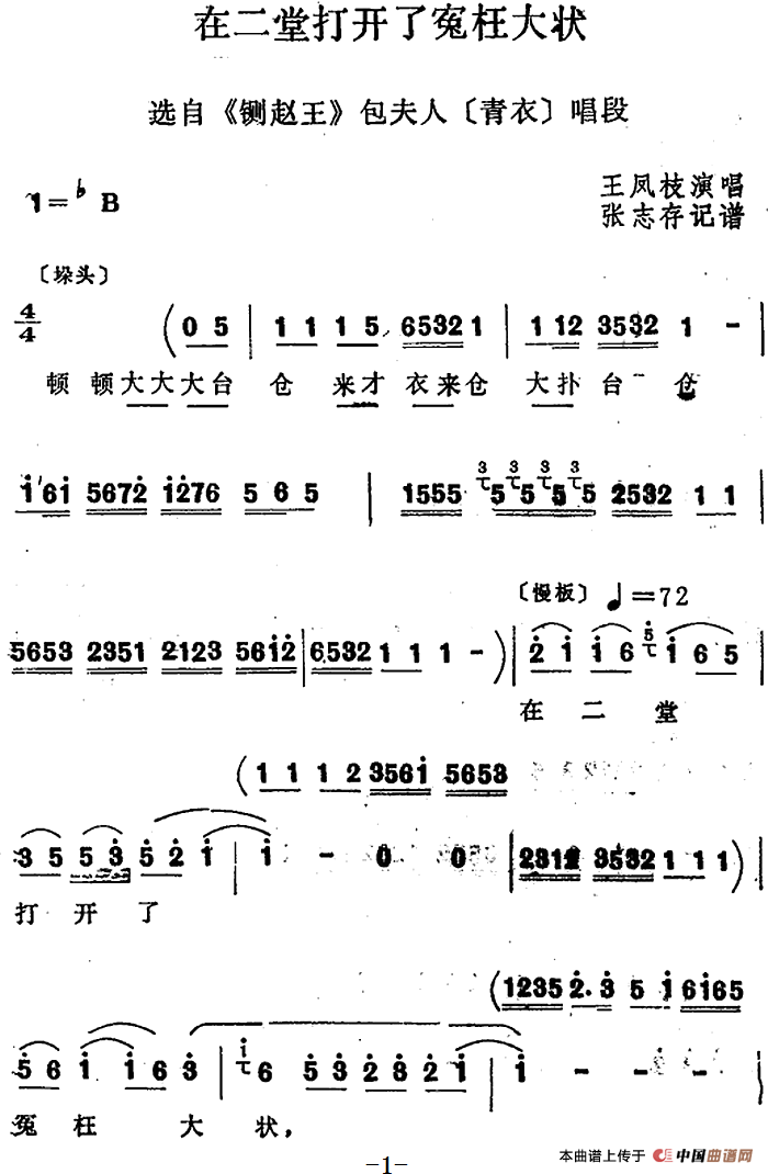 [四股弦]在二堂打开了冤枉大状(选自《铡赵王》包夫人唱段)