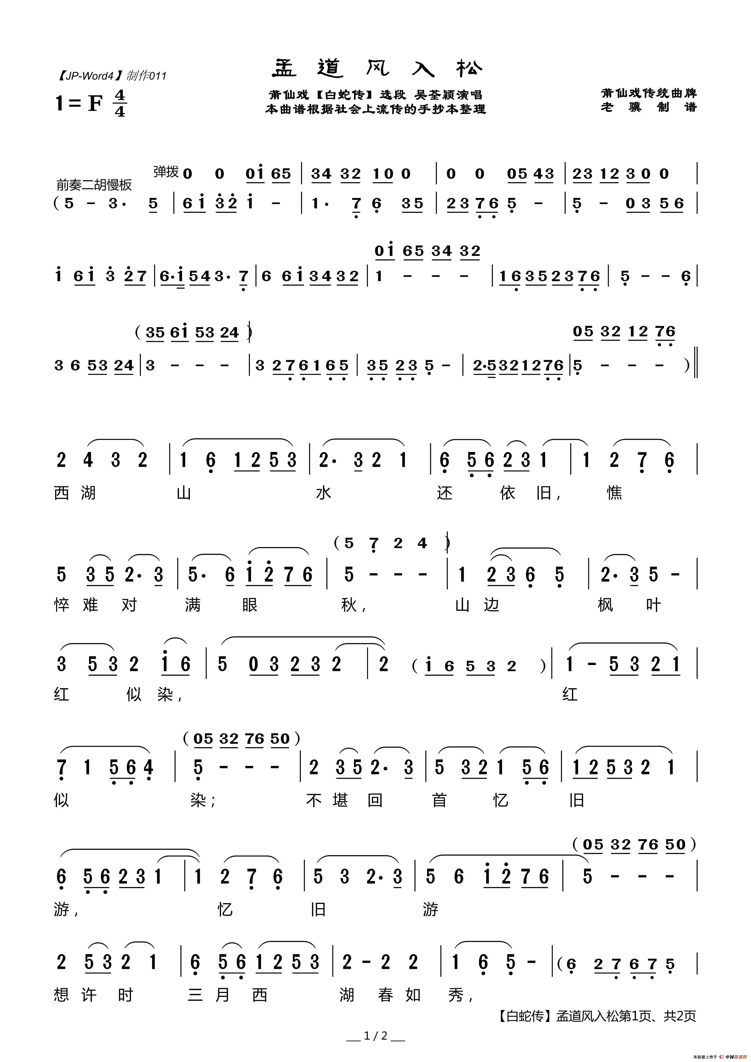 关于《[莆仙戏]孟道风入松》曲谱的评论
