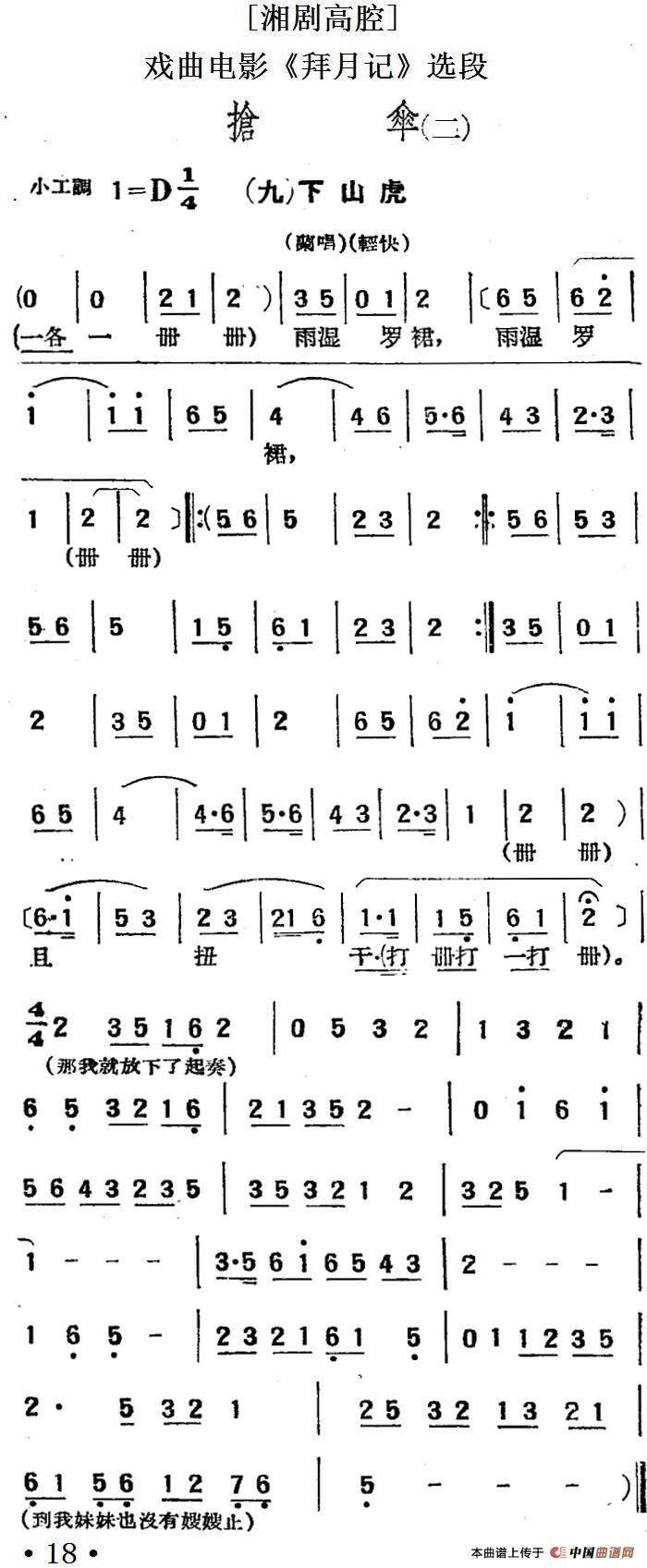 关于《[湘剧高腔]抢伞(二)·(九)下山虎》曲谱的评论