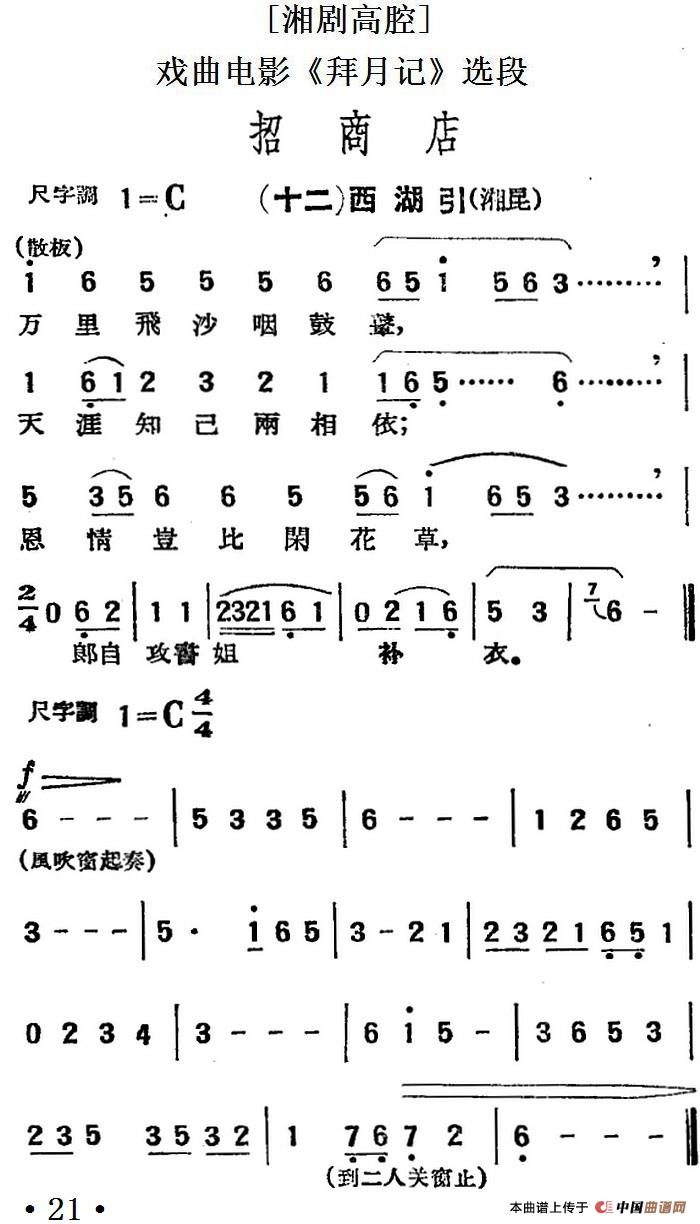 关于《[湘剧高腔]招商店·(十二)西湖引》曲谱的评论