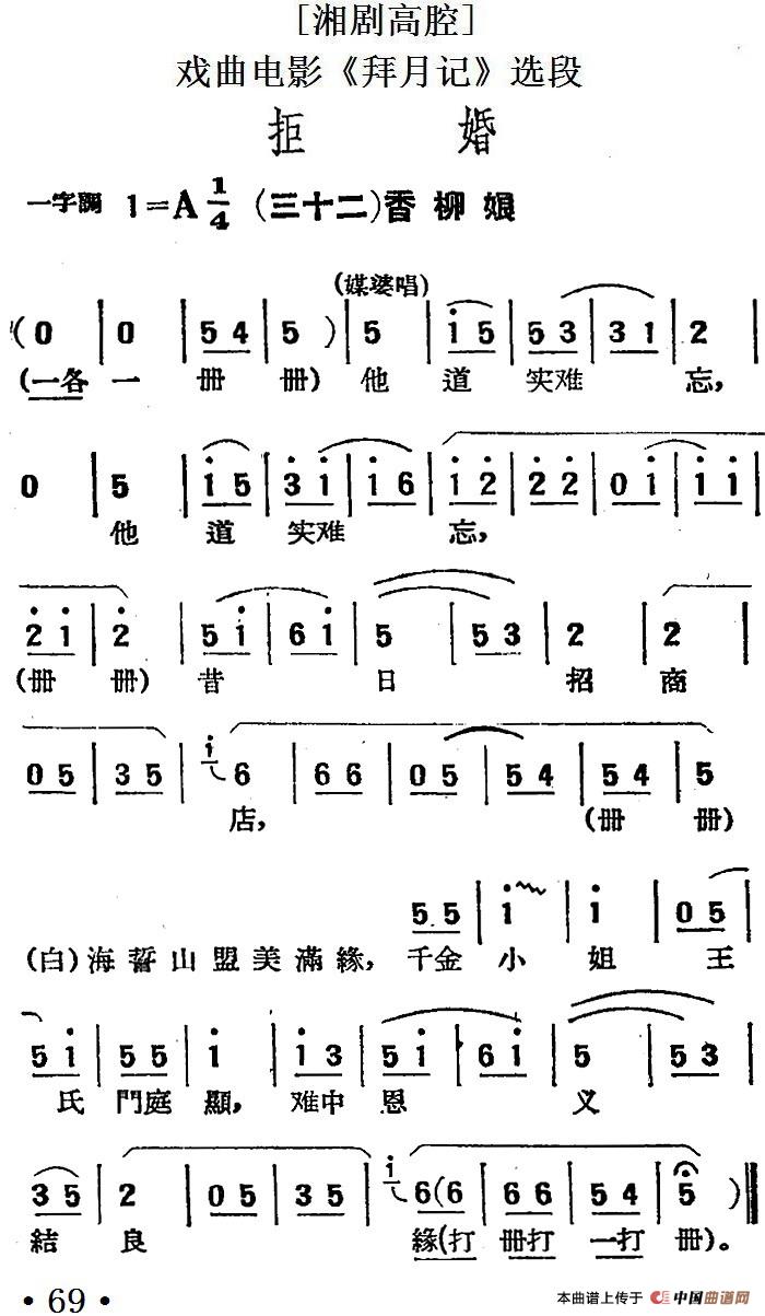 关于《[湘剧高腔]拒婚(三十二)香柳娘》曲谱的评论