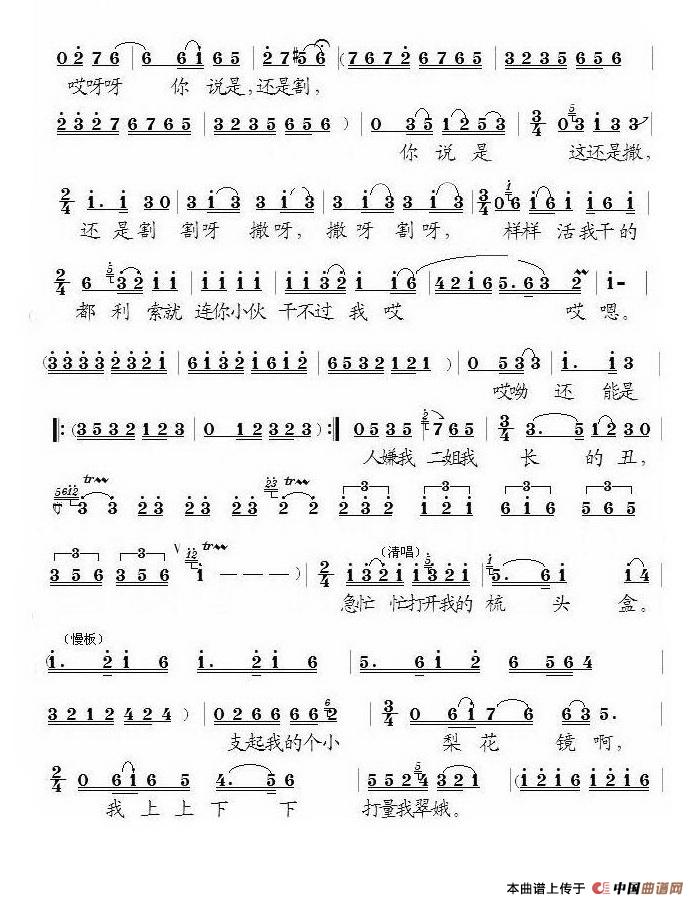 小二姐做梦是泗州戏(拉魂腔)曲谱,不是豫剧曲谱。 [回复]