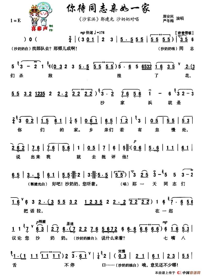 关于《[秦腔]你待同志亲如一家》曲谱的评论