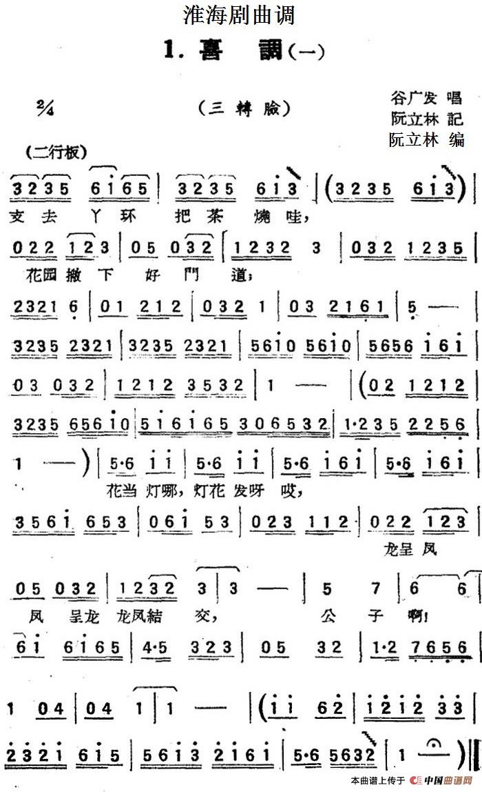 关于《[淮海剧曲调]喜调(一)》曲谱的评论