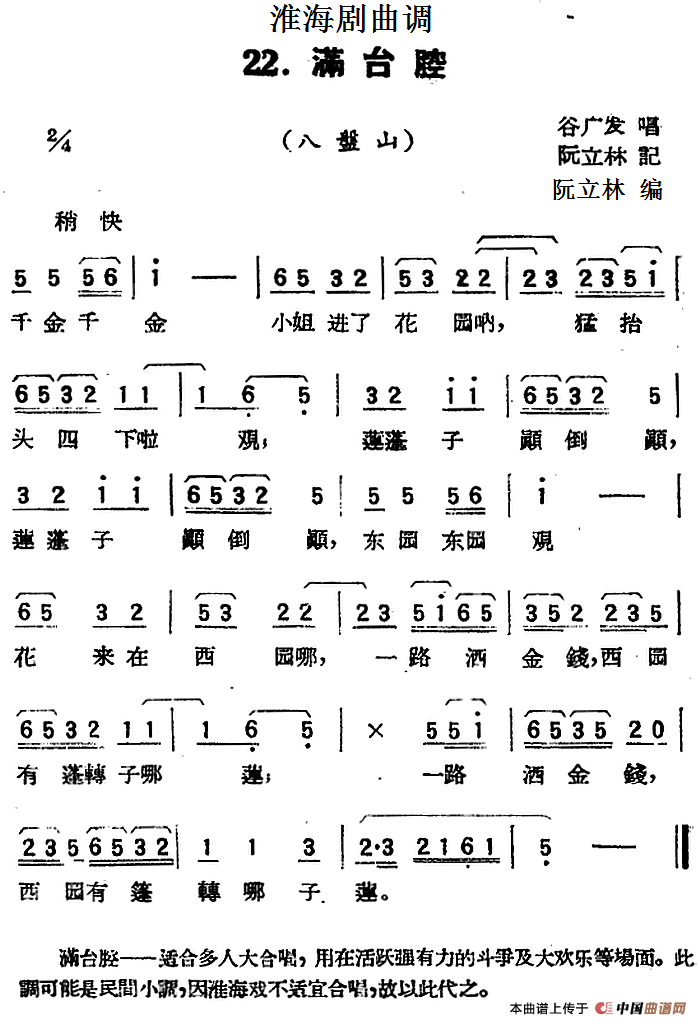 关于《[淮海剧曲调]满台腔》曲谱的评论