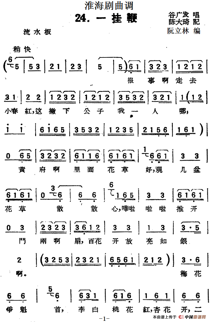 关于《[淮海剧曲调]一挂鞭》曲谱的评论