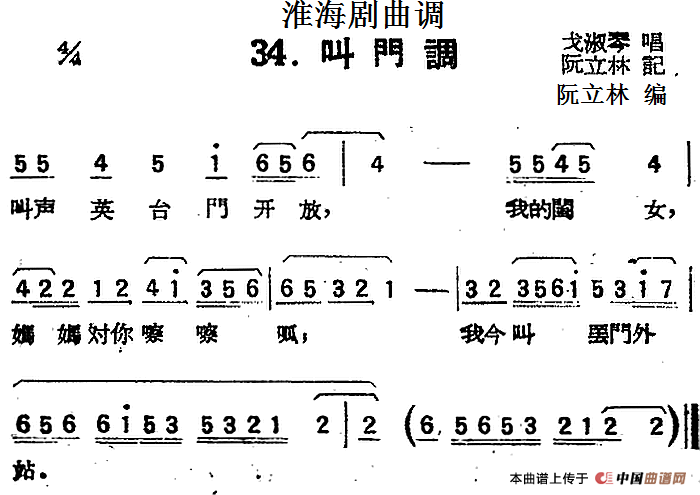 关于《[淮海剧曲调]叫门调》曲谱的评论