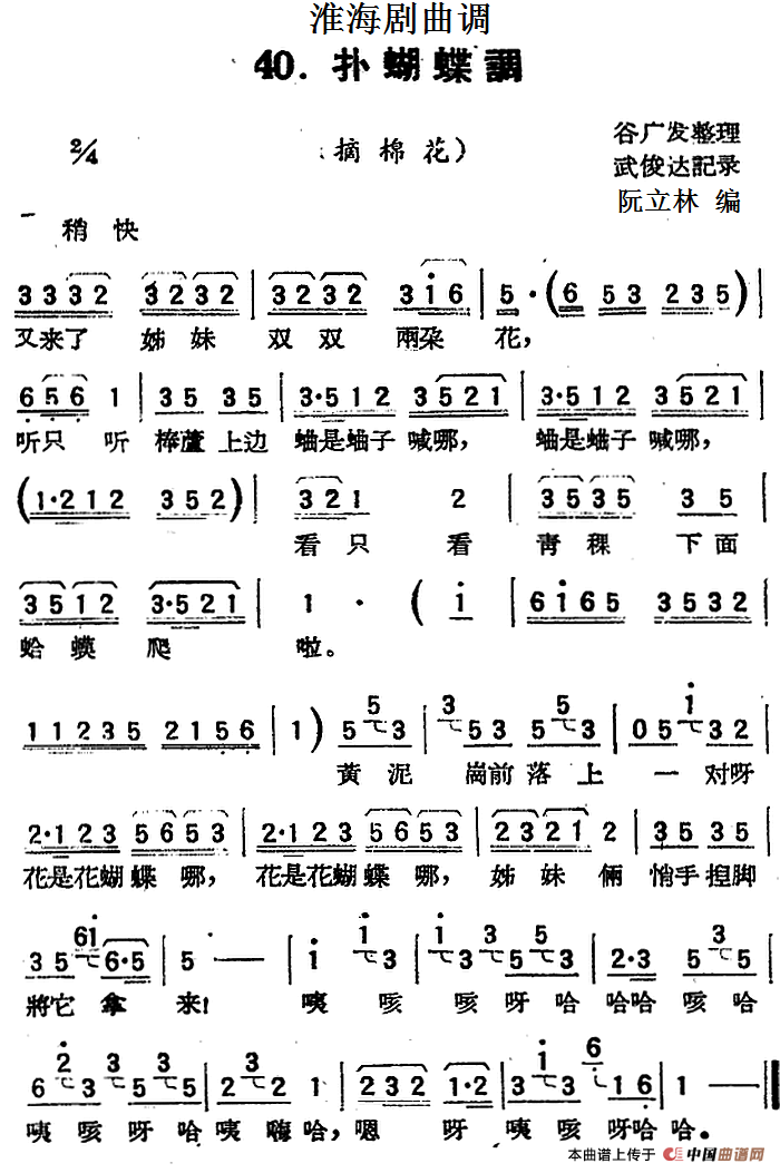 关于《[淮海剧曲调]扑蝴蝶调》曲谱的评论
