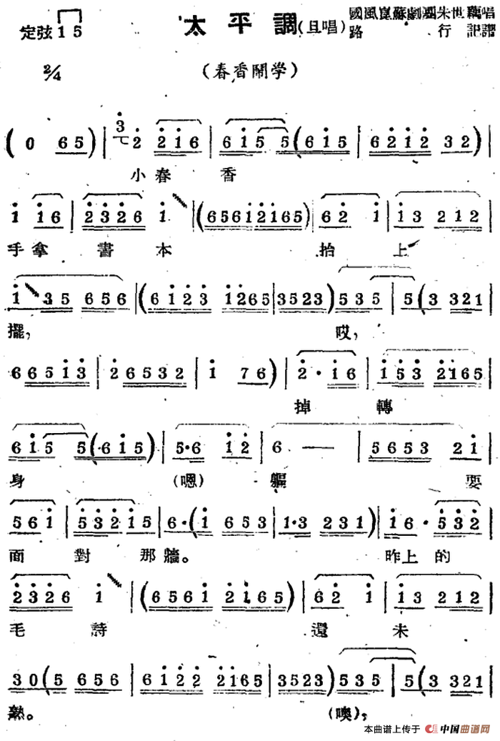 ![[苏剧曲调]太平调(旦唱)(选自《春香闹学》)(1)_原文件名:[苏剧曲调]太平调(旦唱)(选自《春香闹学》)国风昆苏剧团朱世藕演唱 路行记谱.png](/Public/Uploads/2017/01/11/58762e1124a06.png)