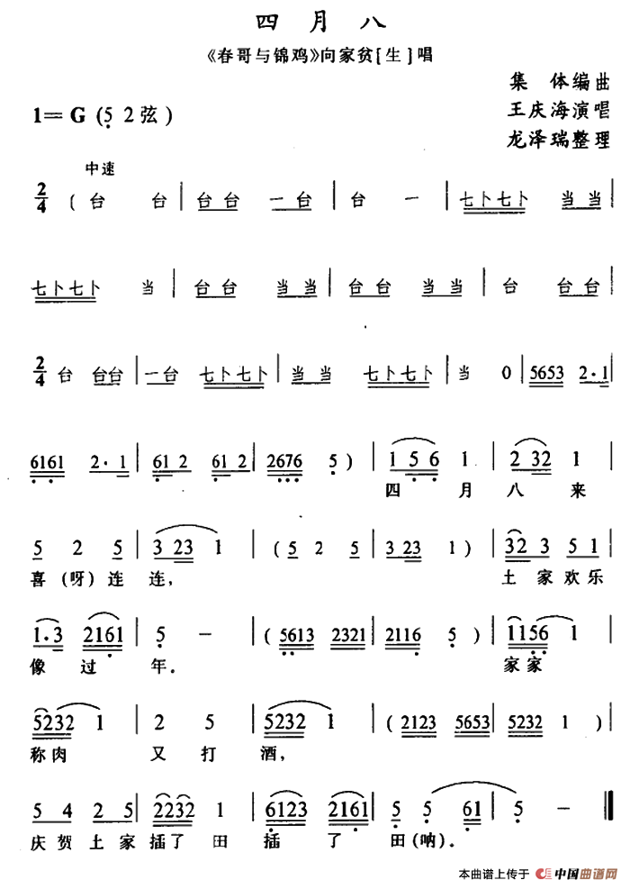 作曲:龙泽瑞整理 演唱(奏):王庆海 来源:《中国曲谱网》 上传:秋叶起舞