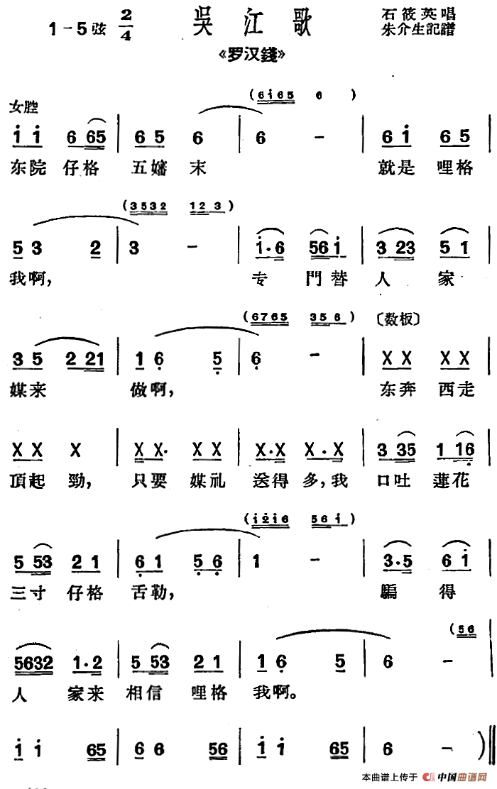 ![[沪剧曲调]吴江歌(选自《罗汉钱》)(1)_原文件名:[沪剧曲调]吴江歌(选自《罗汉钱》) 石筱英演唱 朱介生记谱.png](/Public/Uploads/2017/01/15/237945587b73ab67670.png)