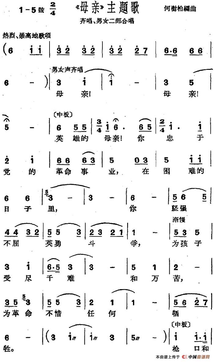 ![[沪剧曲调]《母亲》主题歌(齐唱、男女二部合唱)(1)_原文件名:[沪剧曲调]《母亲》主题歌(齐唱、男女二部合唱)何树柏编曲.jpg](/Public/Uploads/2017/01/16/237945587ccde8d7317.jpg)