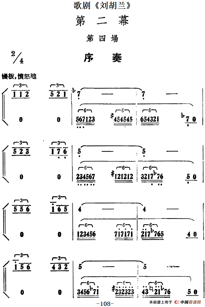 关于《歌剧《刘胡兰》全剧第二幕 第四场 序奏》曲谱的评论