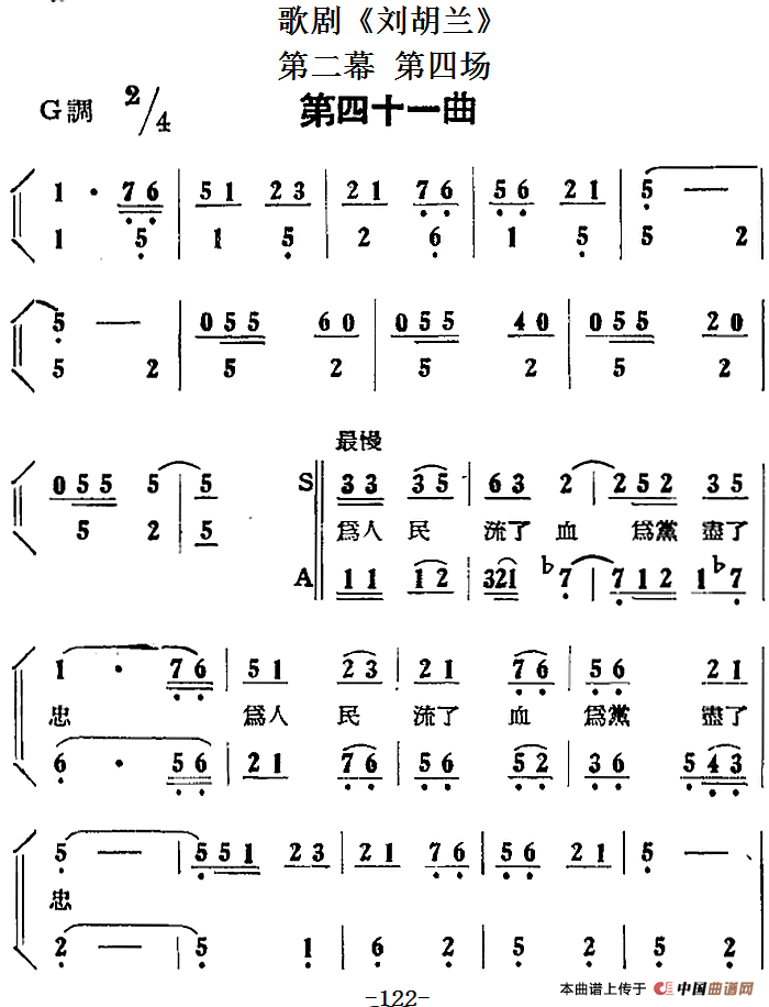 关于《歌剧《刘胡兰》全剧第二幕 第四场 第四十一曲》曲谱的评论
