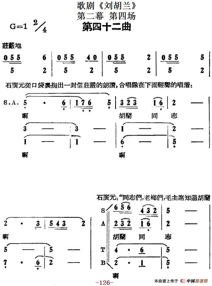 关于《歌剧《刘胡兰》全剧第二幕 第四场 第四十二曲》曲谱的评论