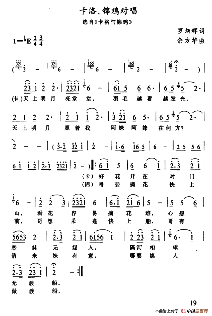 关于《[土家族实验剧]卡洛、锦鸡对唱》曲谱的评论