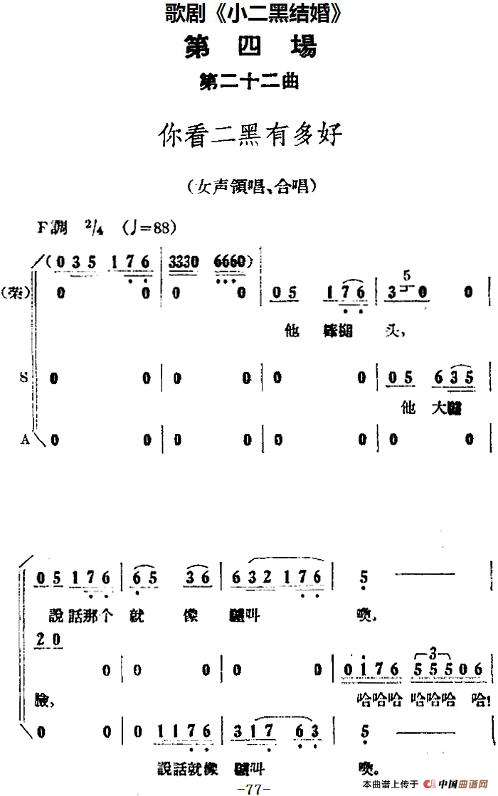 关于《歌剧《小二黑结婚》全剧之第四场 第二十二曲》曲谱的评论