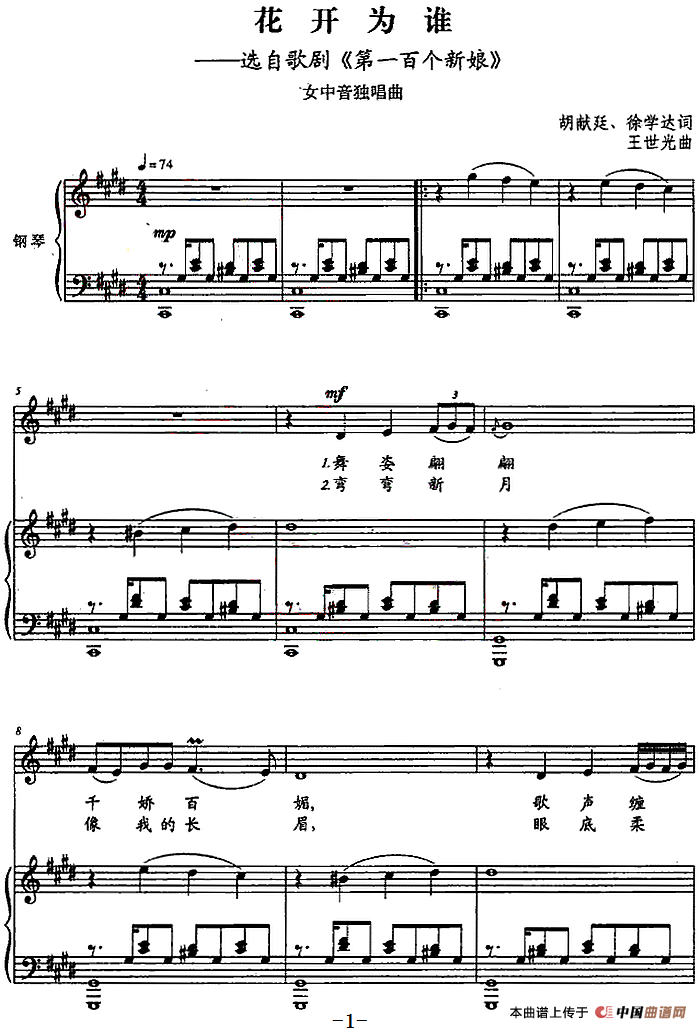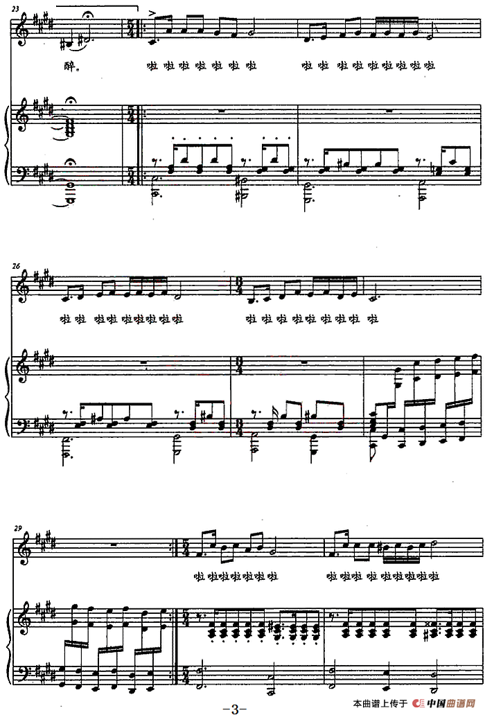 提示:在曲谱图片上单击右键,选择“图片另存为...”即可将曲谱保存到您的电脑中,打印时候可将图片插入到WORD中,调整合适大小打印即可。