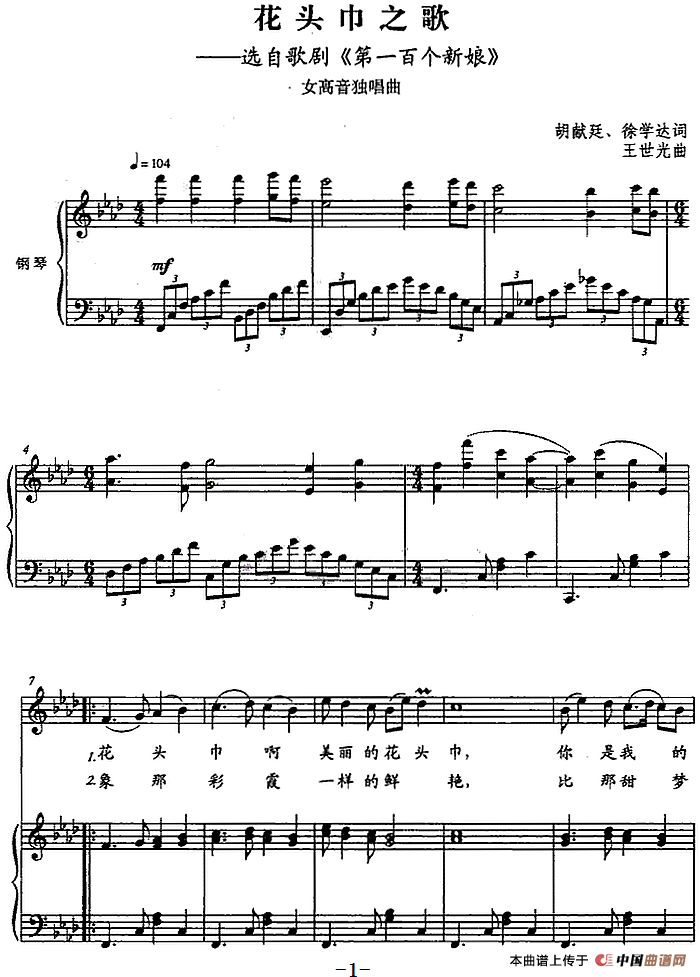 关于《花头巾之歌》曲谱的评论