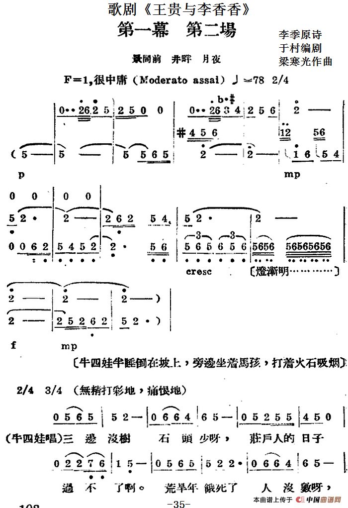 关于《歌剧《王贵与李香香》全剧之第一幕 第二场》曲谱的评论