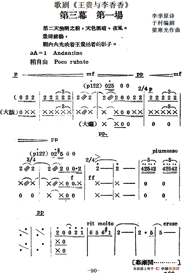 关于《歌剧《王贵与李香香》全剧之第三幕 第一场》曲谱的评论