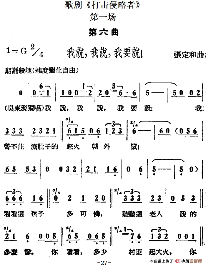 歌剧《打击侵略者》全剧之第一场 第六曲(我说,我说,我要说!)