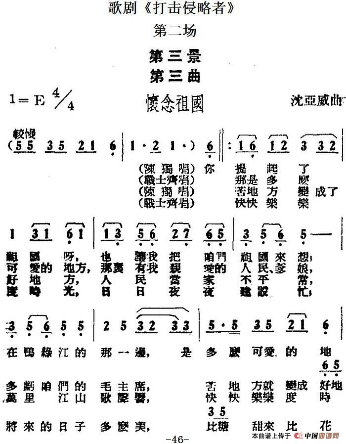 歌剧《打击侵略者》全剧之第二场 第三景 第三曲(怀念祖国)