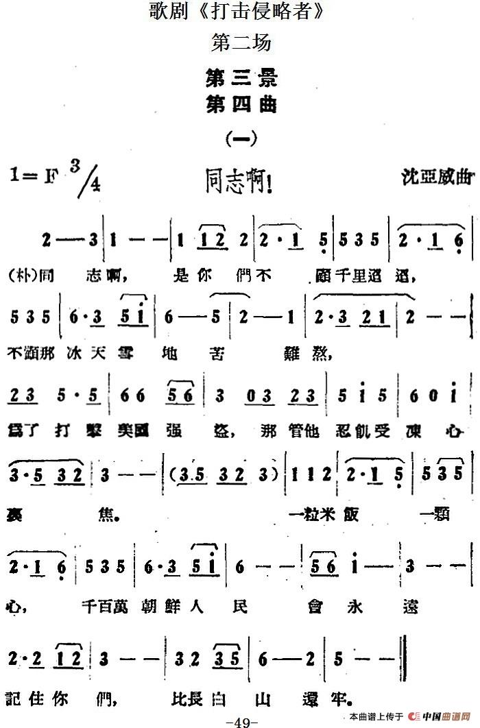 歌剧《打击侵略者》全剧之第二场 第三景 第四曲(一、同志啊!)