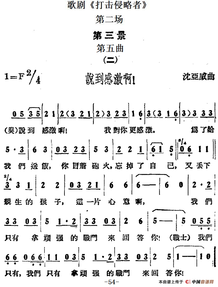 歌剧《打击侵略者》全剧之第二场 第三景 第五曲(二、说到感激啊!)