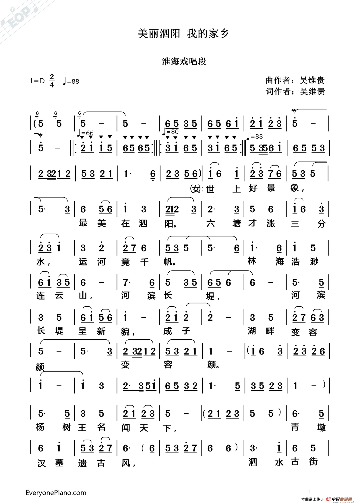关于《[淮海戏]美丽泗阳 我的家乡》曲谱的评论