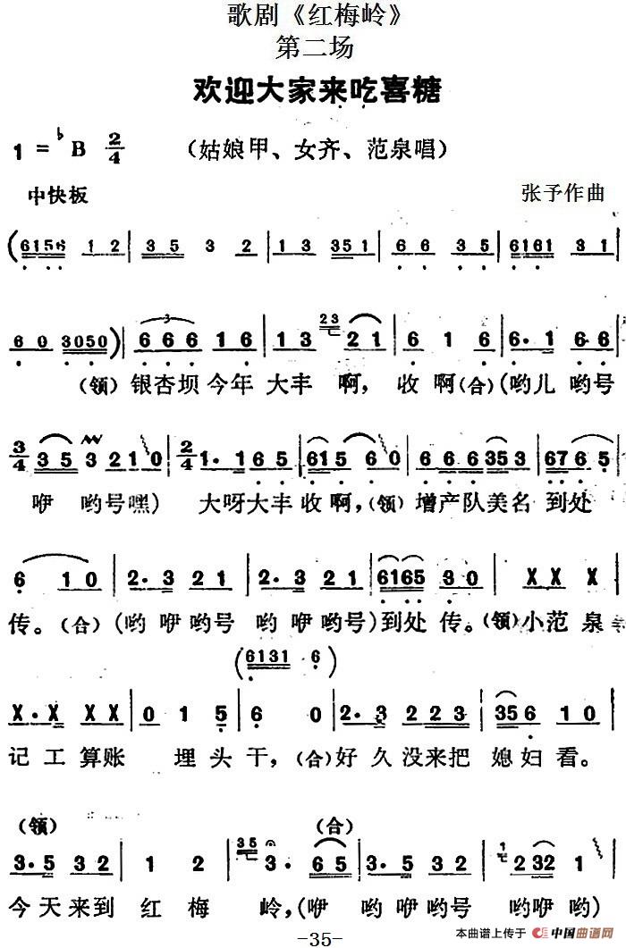 关于《歌剧《红梅岭》全剧之第二场》曲谱的评论
