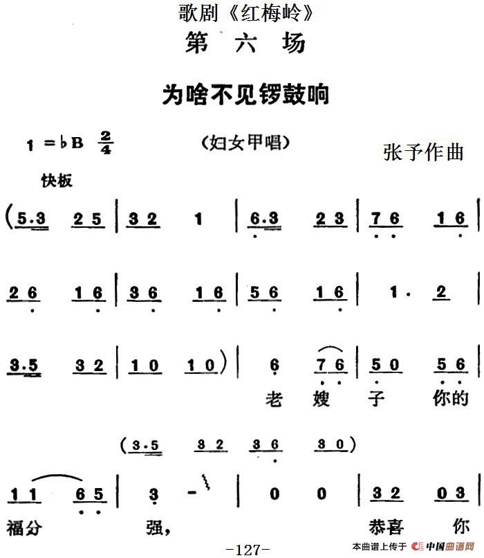 关于《歌剧《红梅岭》全剧之第六场》曲谱的评论