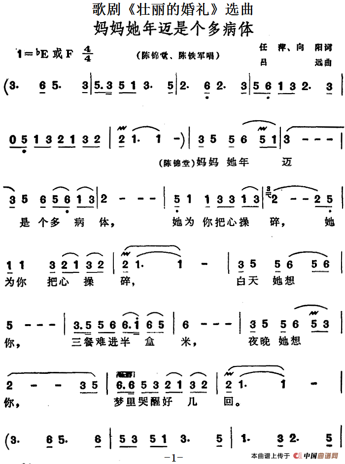 关于《歌剧《壮丽的婚礼》选曲:妈妈她年迈是个多病体》曲谱的评论
