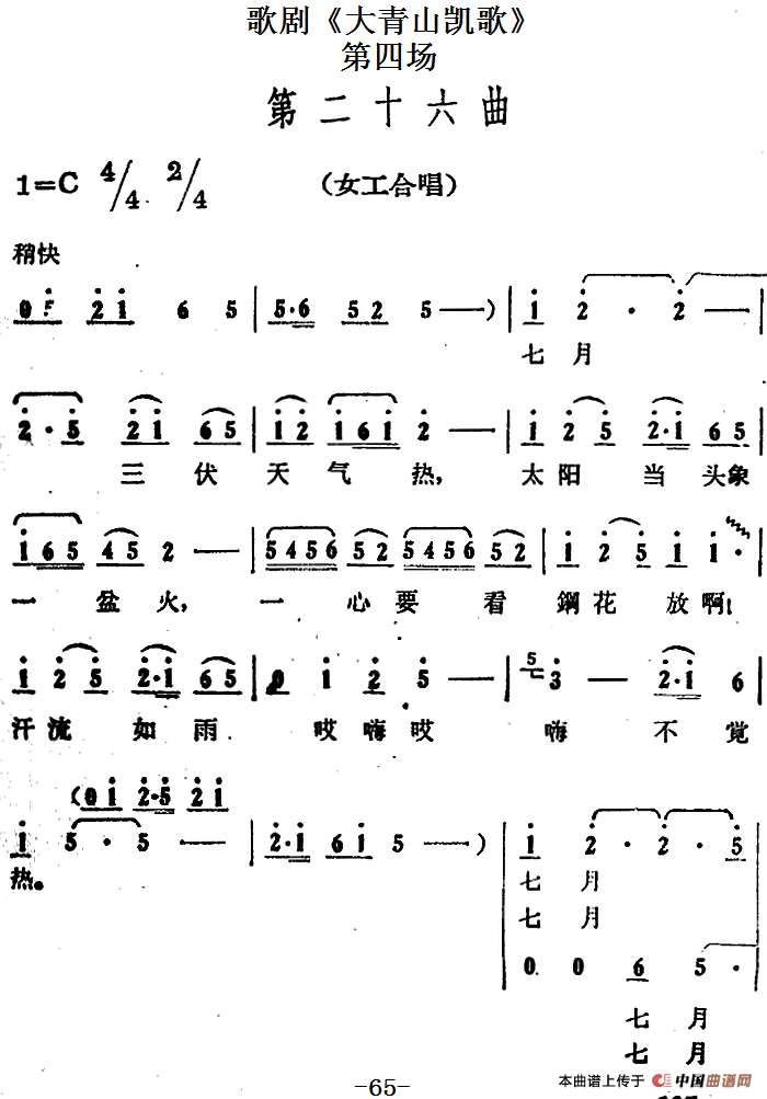 关于《歌剧《大青山凯歌》全剧之第四场 第二十六曲》曲谱的评论