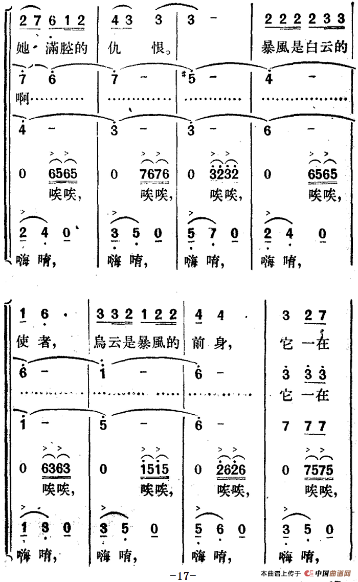 提示:在曲谱图片上单击右键,选择“图片另存为...”即可将曲谱保存到您的电脑中,打印时候可将图片插入到WORD中,调整合适大小打印即可。