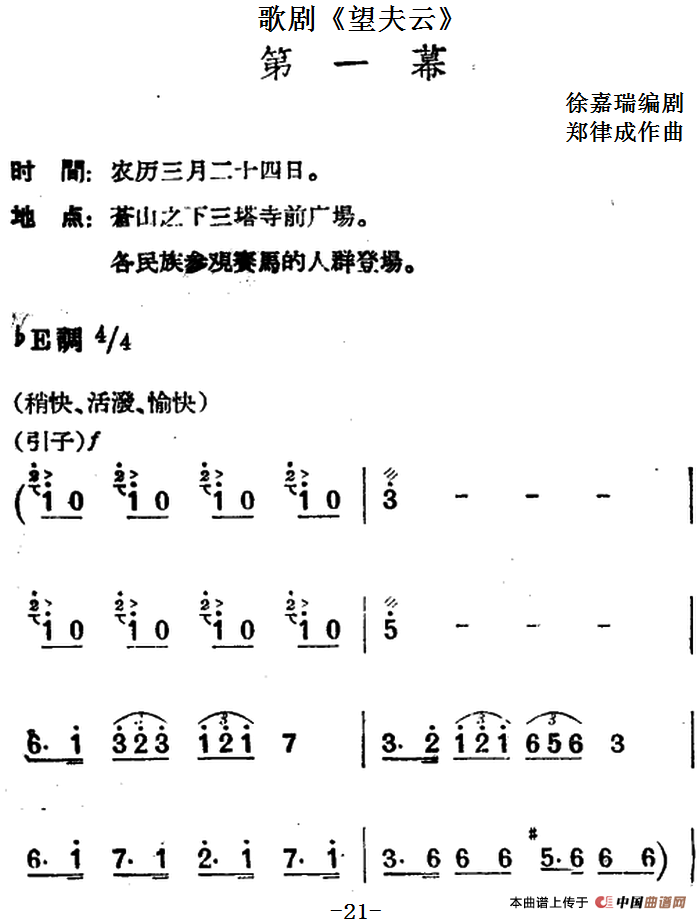关于《歌剧《望夫云》全剧之第一幕》曲谱的评论