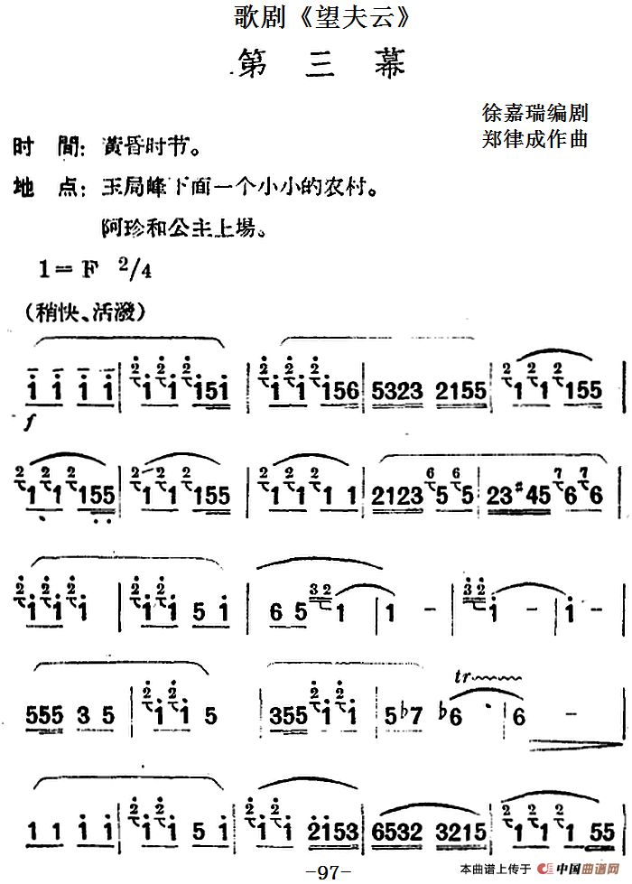 关于《歌剧《望夫云》全剧之第三幕》曲谱的评论