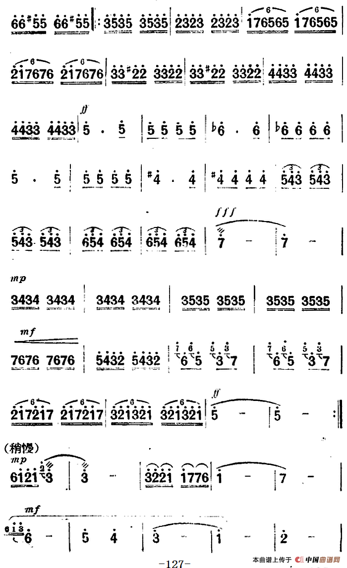 提示:在曲谱图片上单击右键,选择“图片另存为...”即可将曲谱保存到您的电脑中,打印时候可将图片插入到WORD中,调整合适大小打印即可。