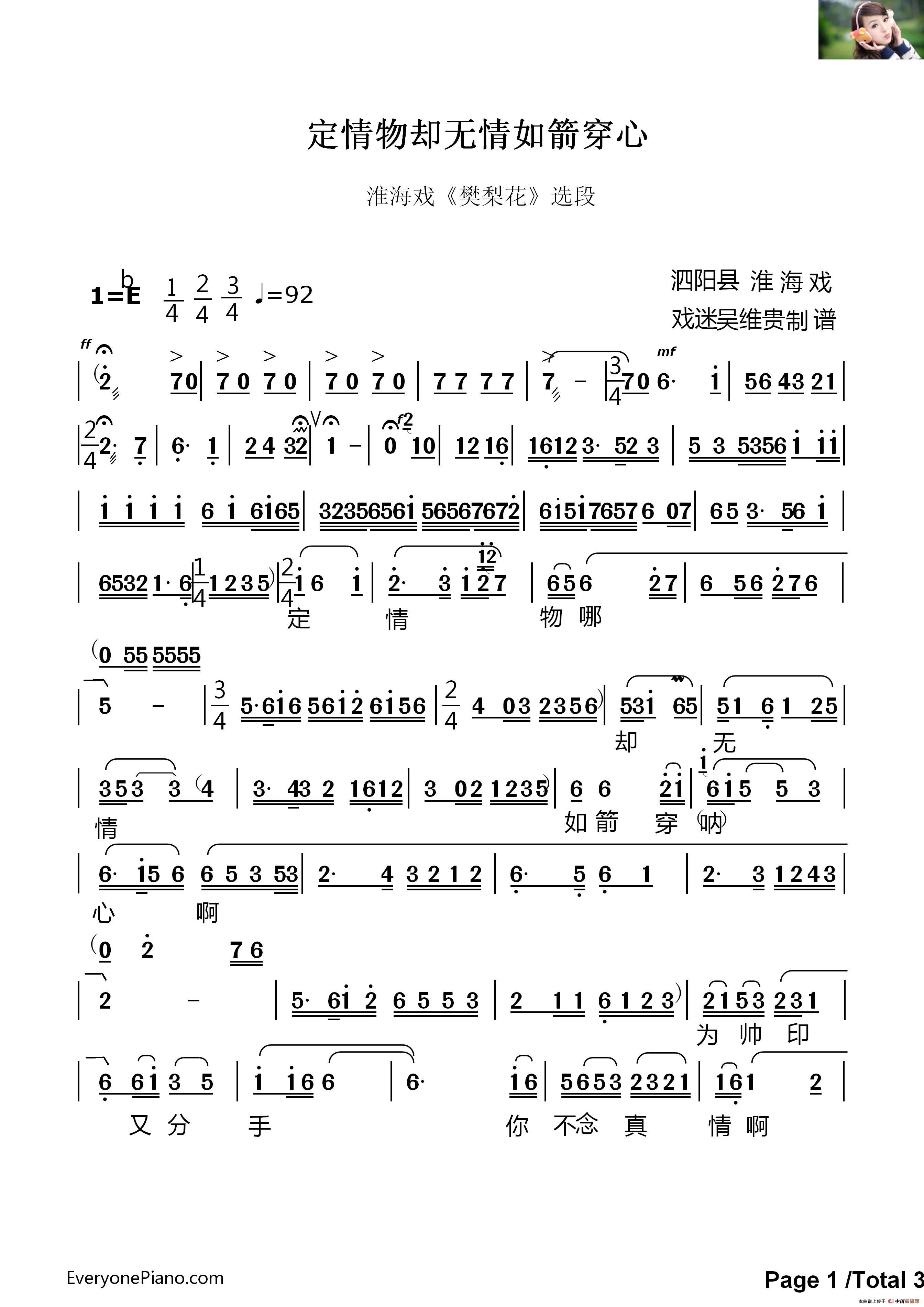 关于《[淮海戏]定情物却无情如箭穿心》曲谱的评论