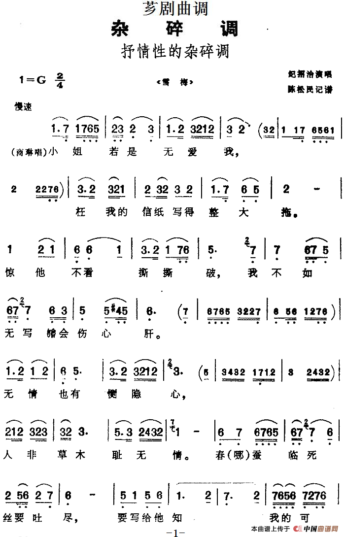 关于《[芗剧曲调]抒情性的杂碎调》曲谱的评论