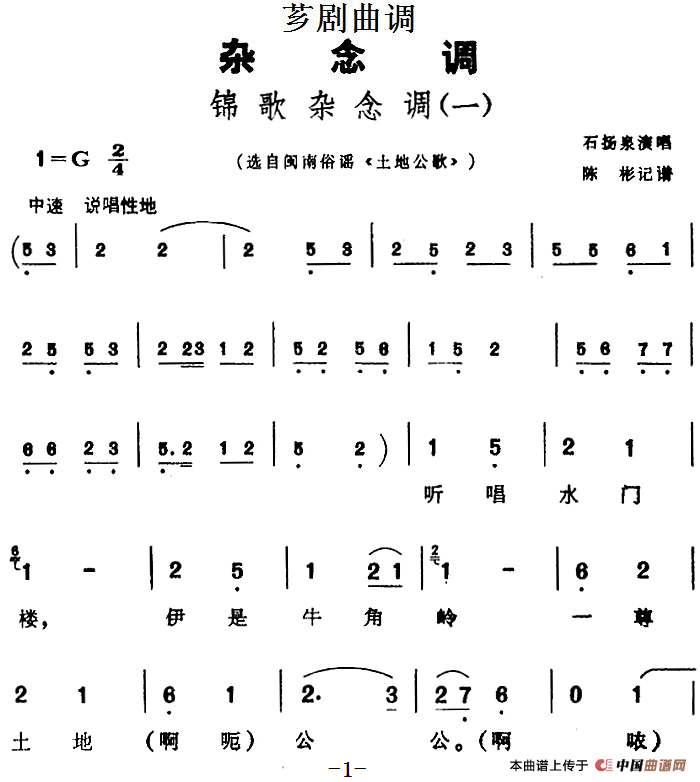 关于《[芗剧曲调]锦歌杂念调》曲谱的评论