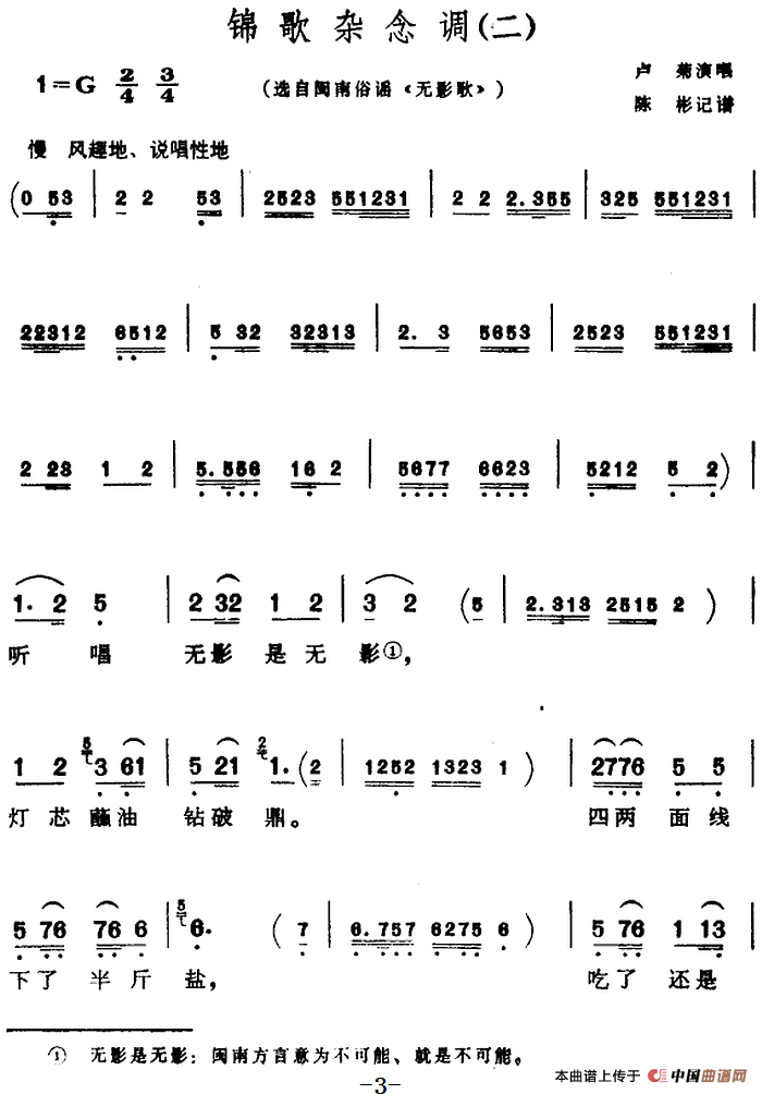 ![[芗剧曲调]锦歌杂念调(2首)(1)_原文件名:[芗剧曲调]锦歌杂念调(2首)陈彬记谱3.png](/Public/Uploads/2017/03/02/23794558b811b4df963.png)