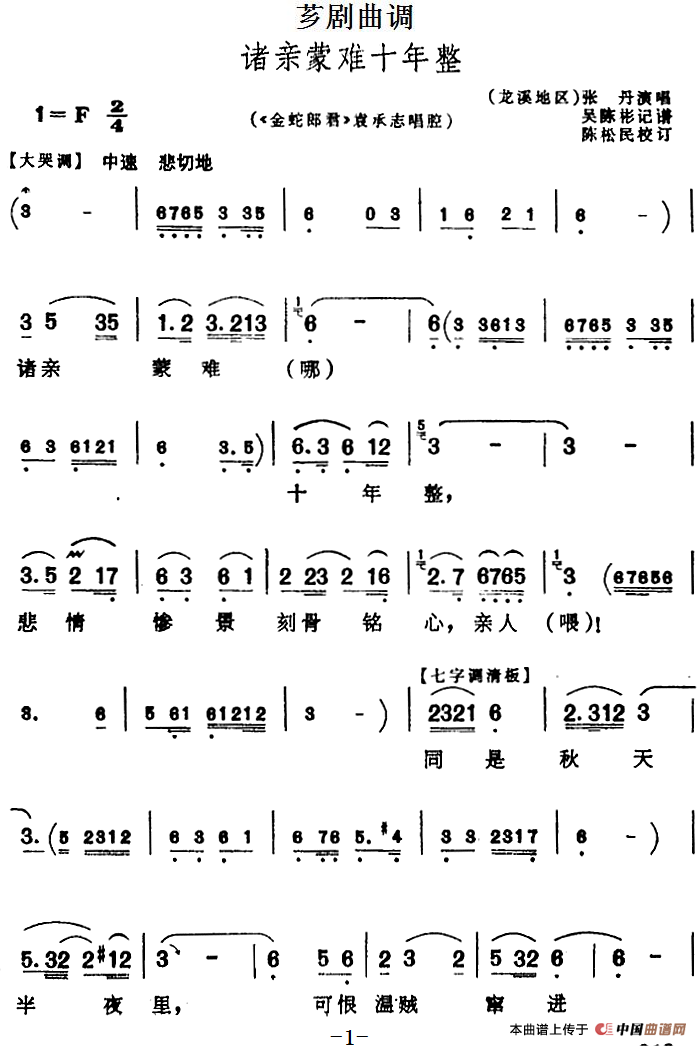 关于《[芗剧曲调]诸亲蒙难十年整》曲谱的评论